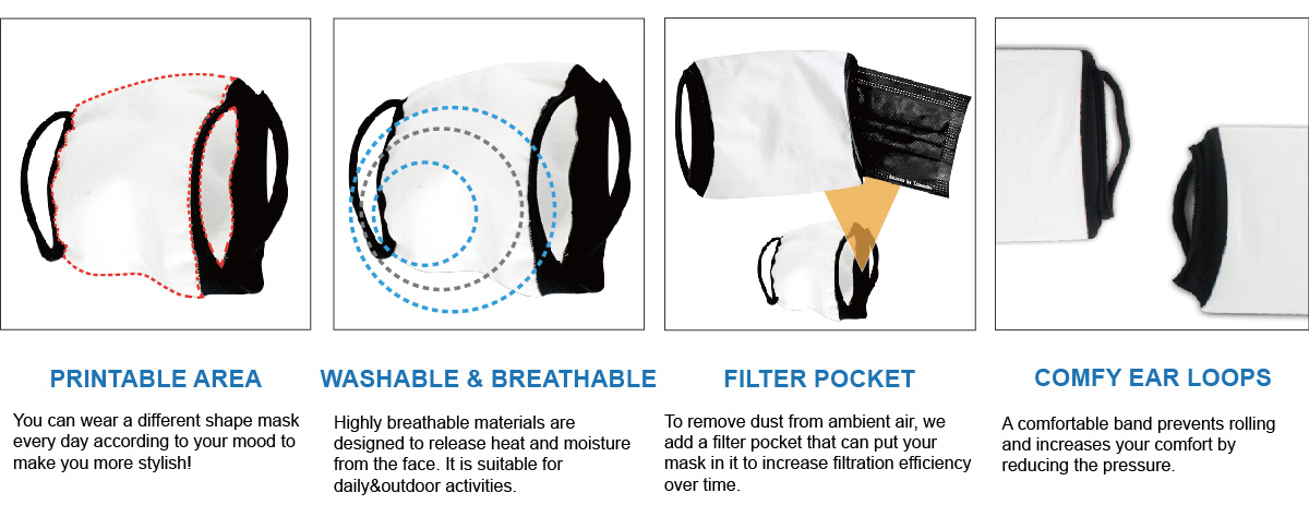 - Printable Area: You can wear a different shape mask every day according to your mood to make you more stylish!